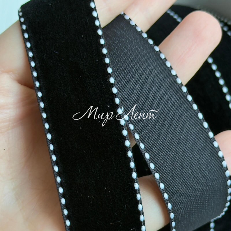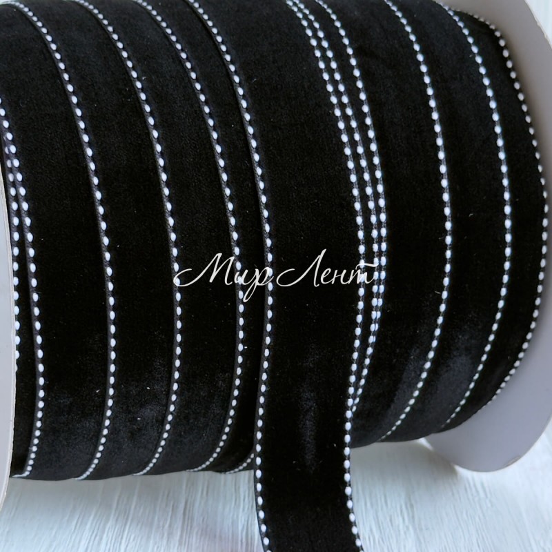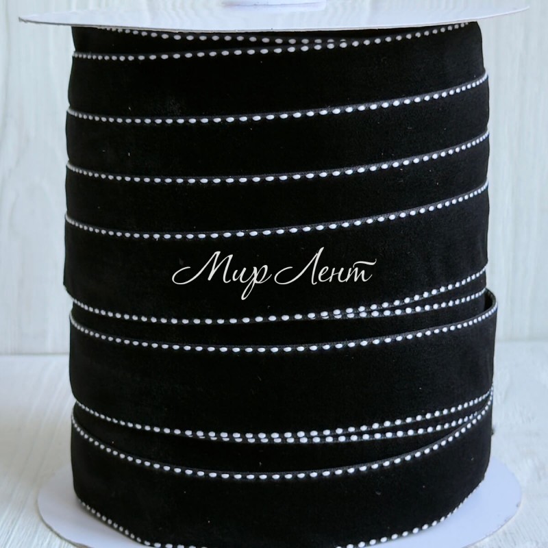 Лента велюр с кантом, 2,5 см, черная, рулон 45 м