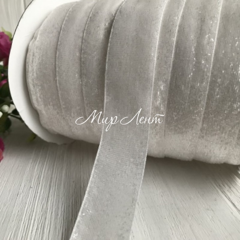 Лента велюр с люрексом, 2,5 см, белый, рулон 45 м