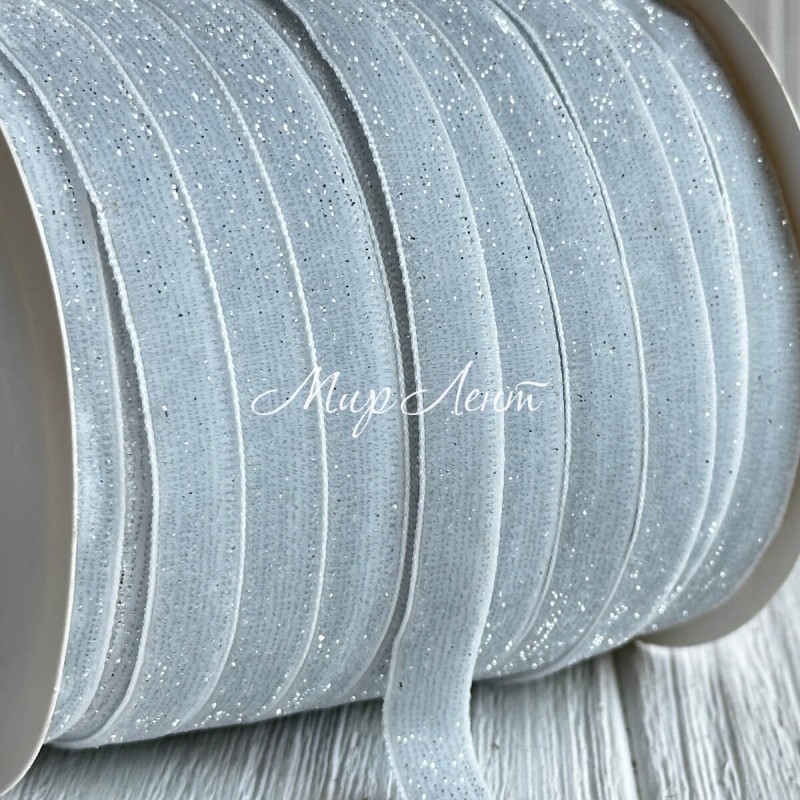 Лента велюр с перламутром, 1 cм, белый, рулон 45 м