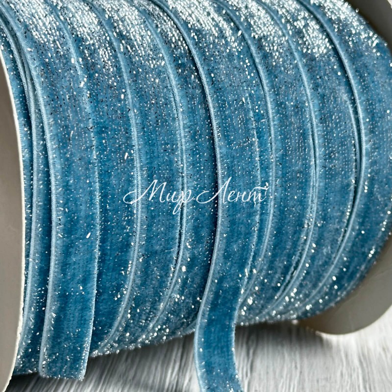 Лента велюр с перламутром, 1 cм, бирюзовый, рулон 45 м