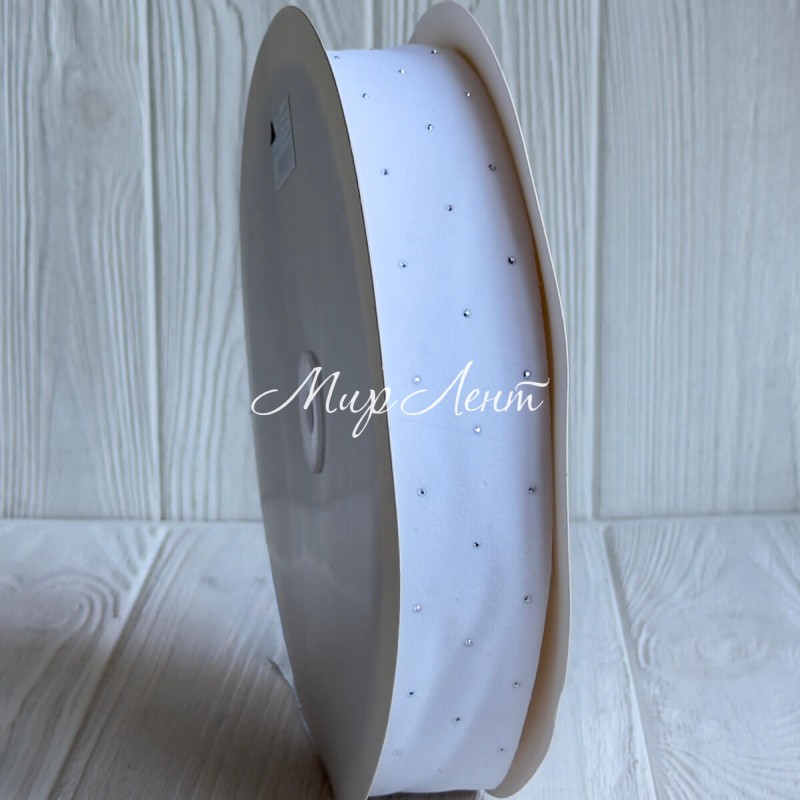 Лента велюр со стразами, 3,8 см, белая, рулон 45 м
