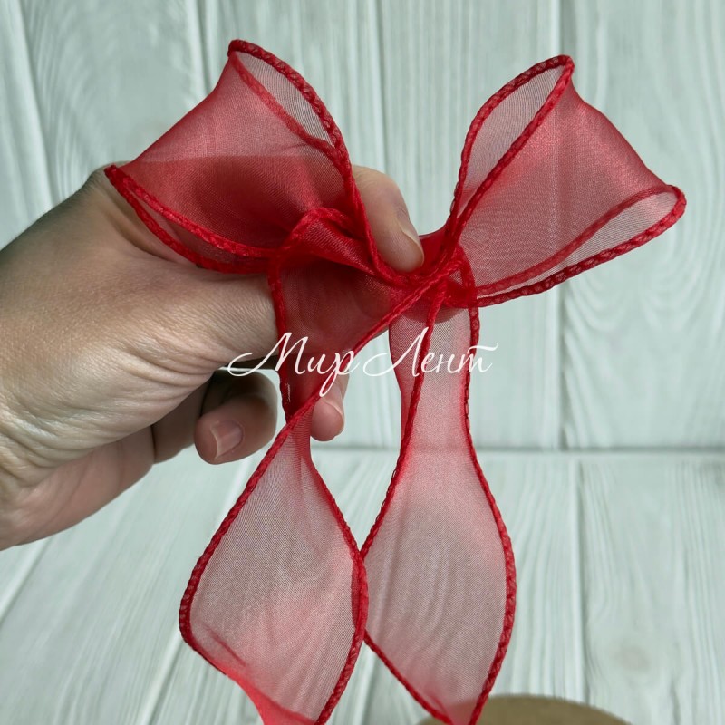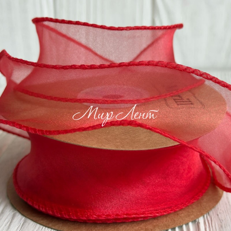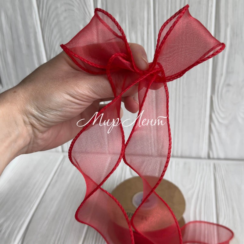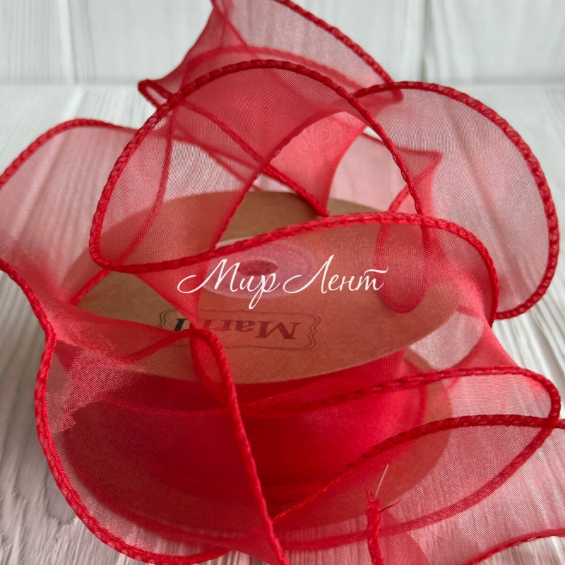Лента-волна с органзы (D30332), 4 см, красная, рулон 9 м