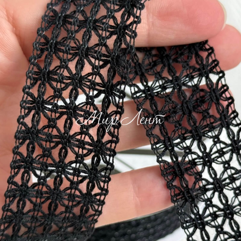 Лента вязаная D30320, 2,5 см, черная, рулон 11,5 м