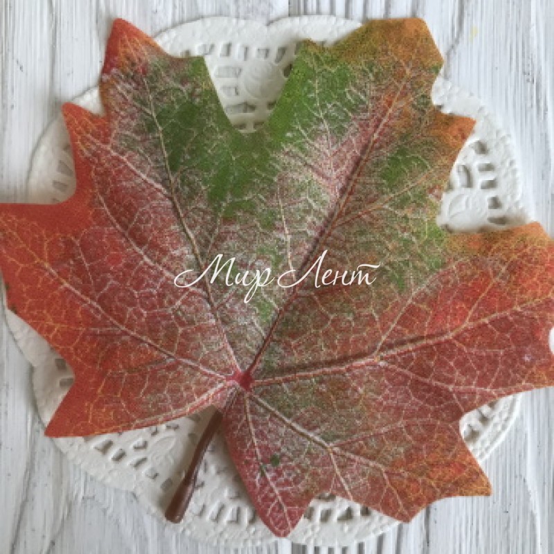 Листик клена с ножкой (средний), 11х9 см, бледно-зелено-красный, упаковка 50 шт.