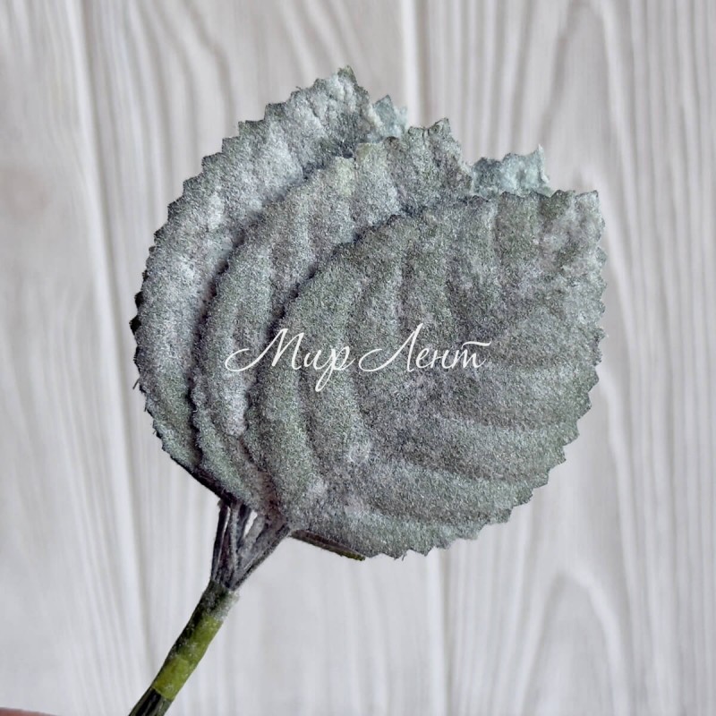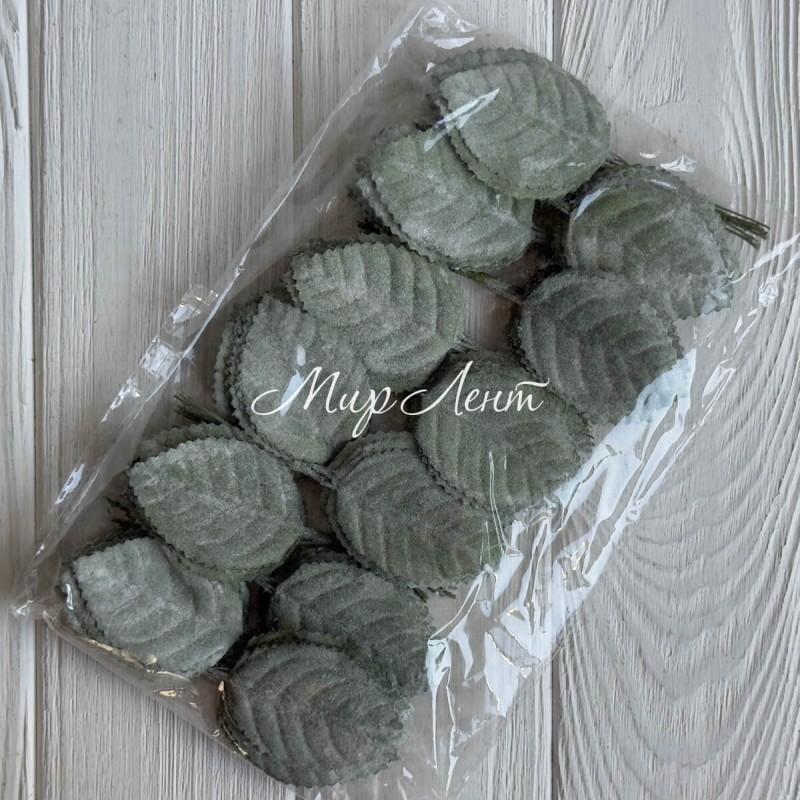 Листик (С30617), 4х5,5 см, зеленый с белым напылением, упаковка 12 шт.