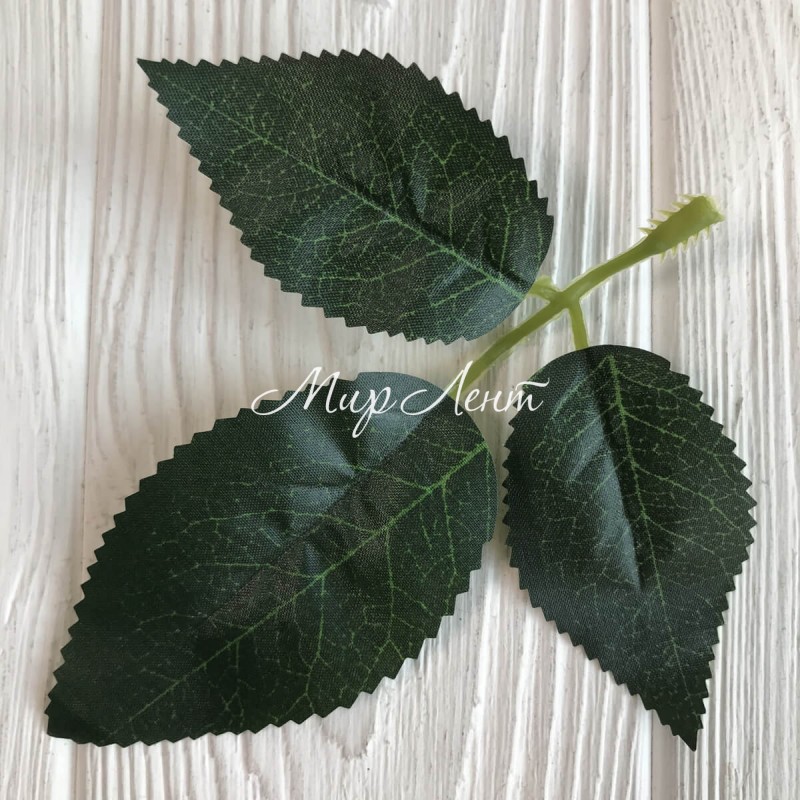 Листики розы на веточке (большие 3 шт.), 12х12 см, зеленый, упаковка 100 шт.