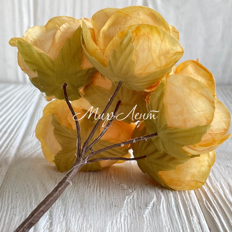 Мраморная роза, 4,5 см, темно-желтая, упаковка 42 шт.