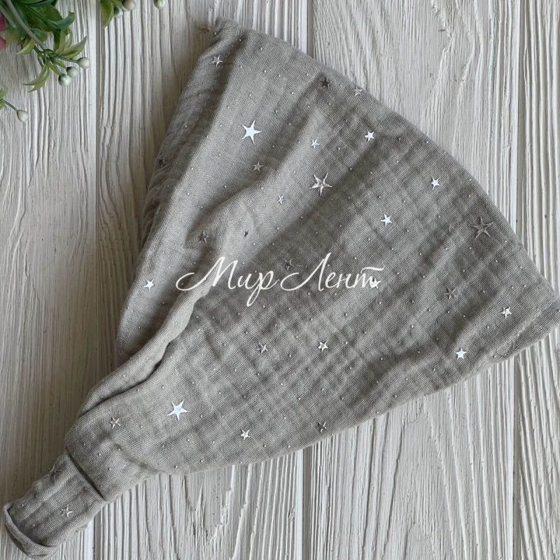Муслиновая бандана со звездочками, 24х19 см, серая, шт.