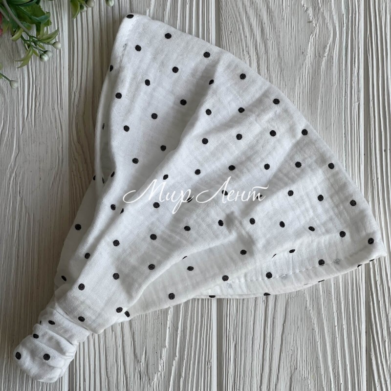 Муслиновая бандана в горох, 22х21 см, бело-черная, шт.