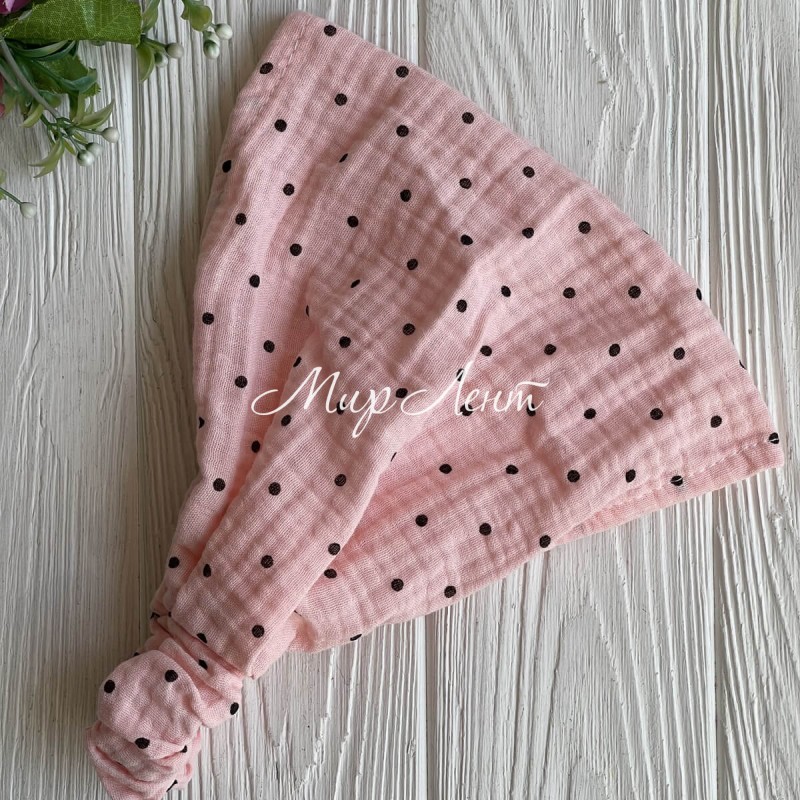 Муслиновая бандана в горох, 22х21 см, персиково-черная, шт.