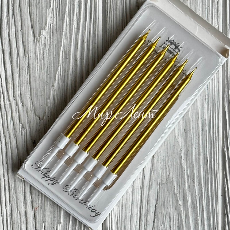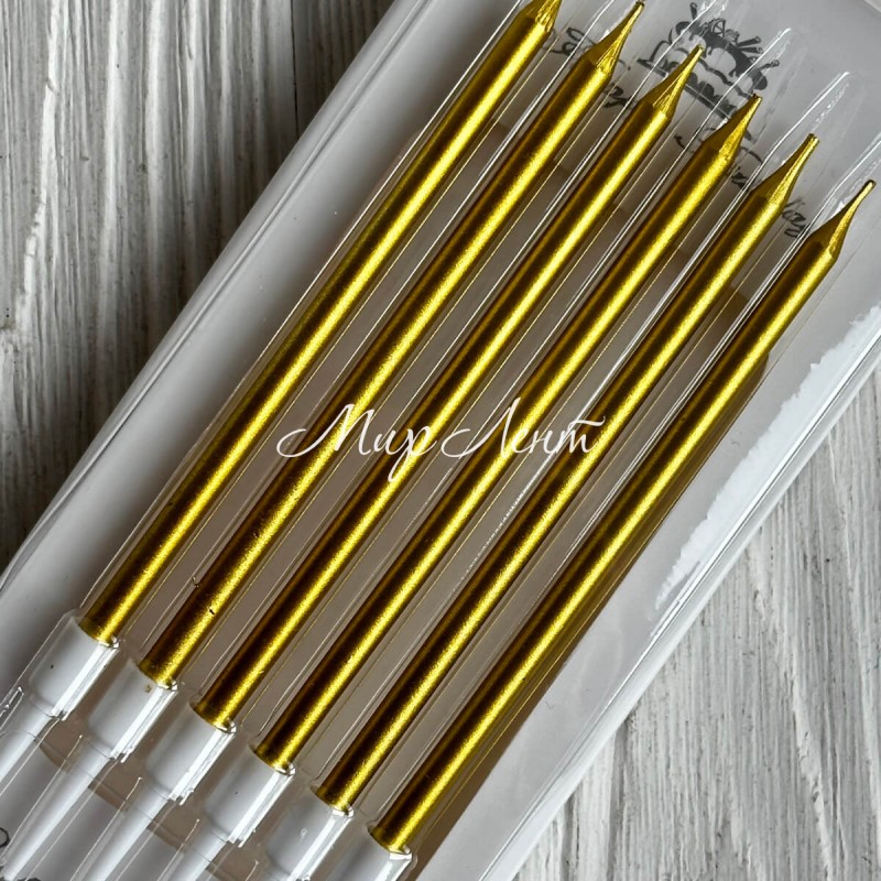 Набор свечей для торта прямой, 12,5 см, золото, упаковка 6 шт.