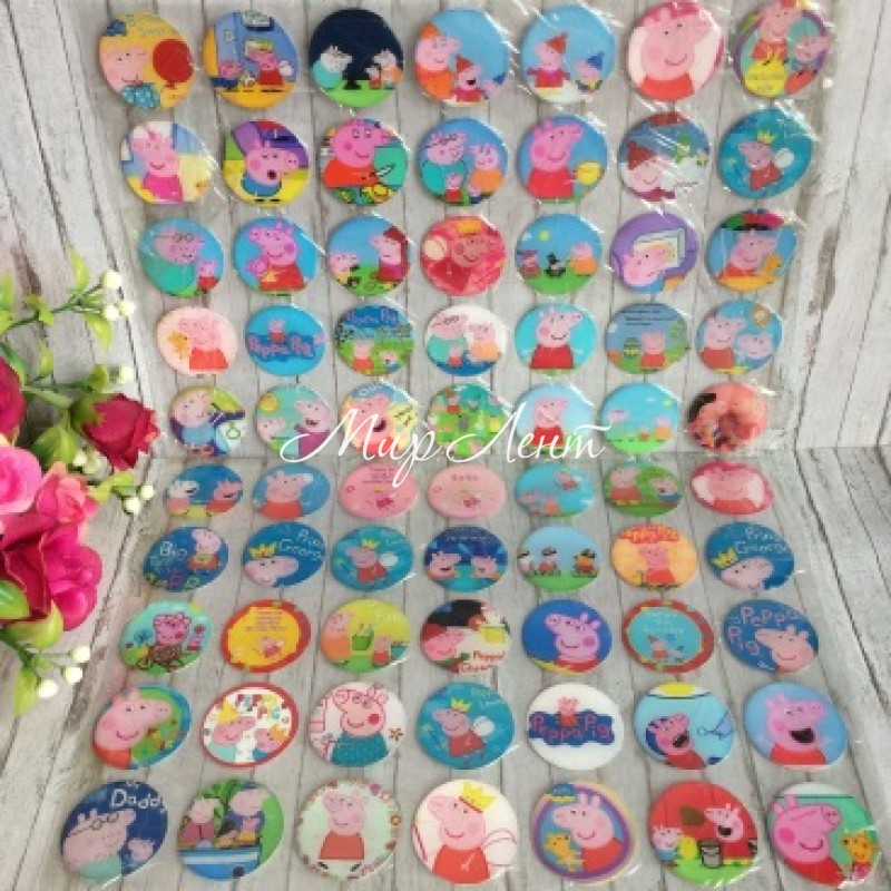 Наклейки для крышечек, свинка Пеппа, упаковка 70 шт.