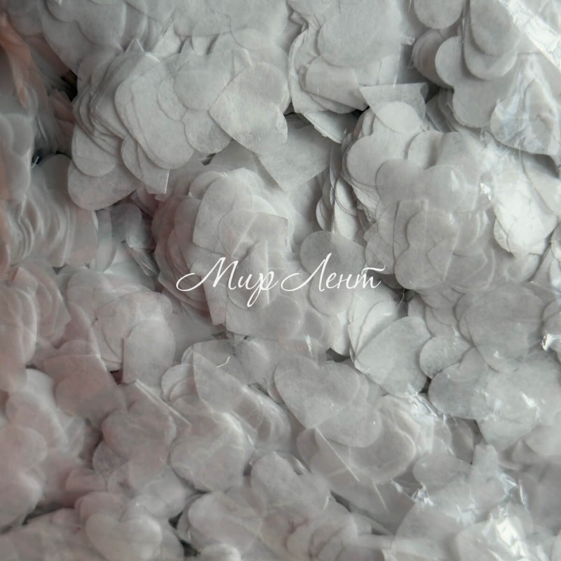 Наполнитель конфети (сердечки), 12 мм, белый, упаковка 100 г