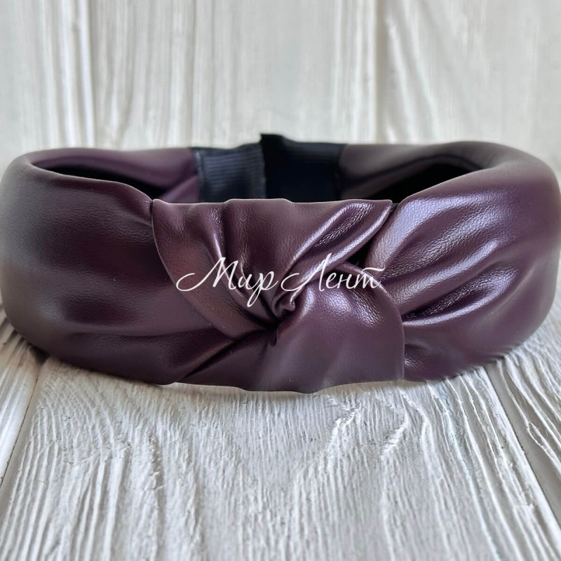 Обруч чалма из экокожи однотонный, 4 см, вишневый, шт.