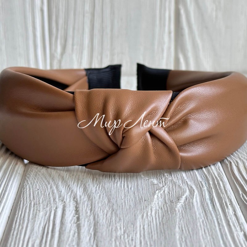 Обруч чалма из экокожи однотонный, 4 см, карамельный, шт.