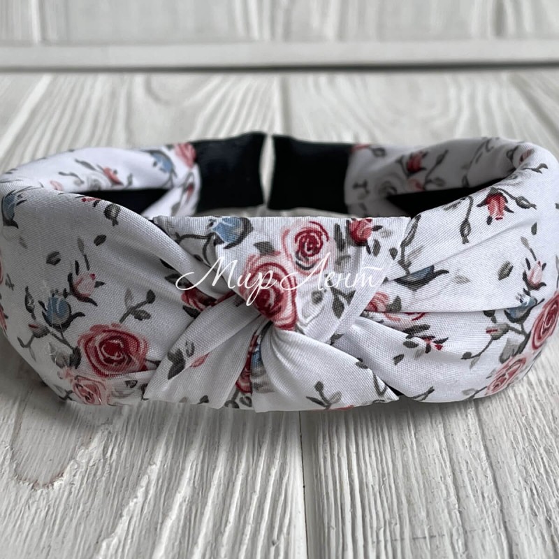 Обруч чалма розочки, 4 см, белый, шт.