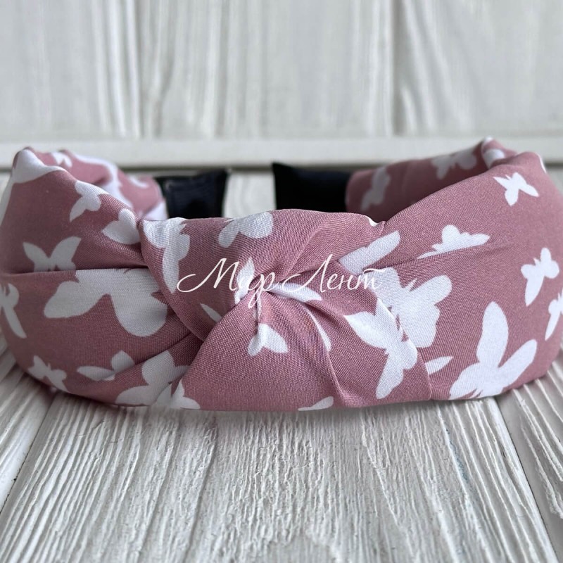 Обруч чалма с бабочками, 4 см, пудровый, шт.
