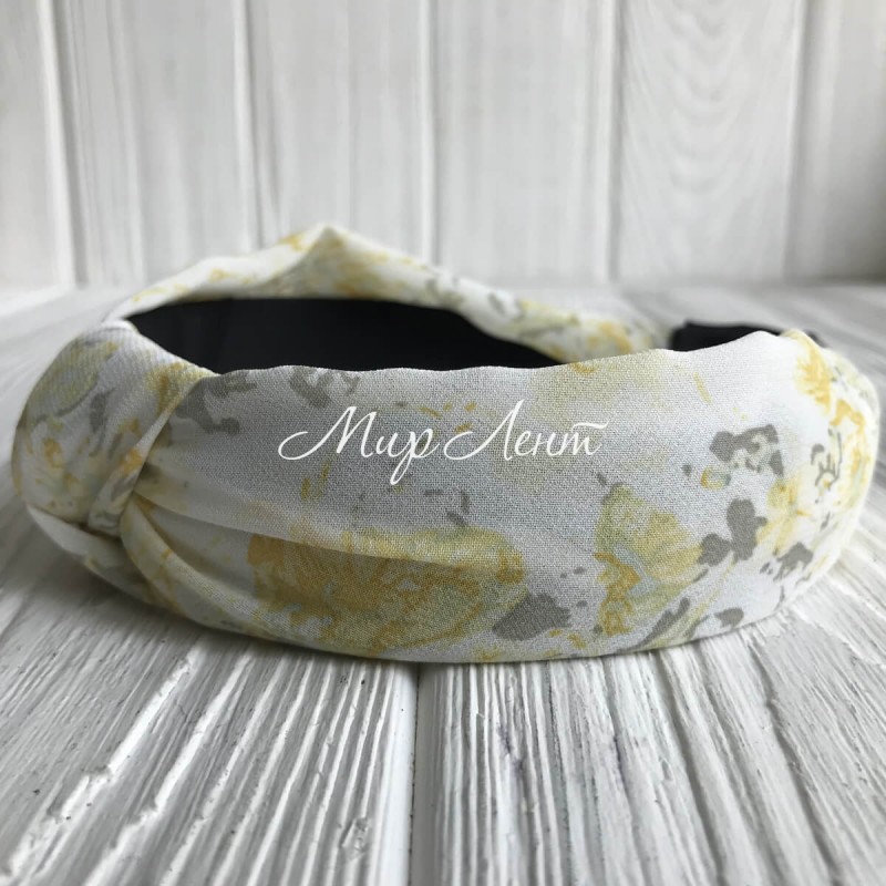 Обруч чалма шифон в цветочек, 4 см, бело-желтый, шт.