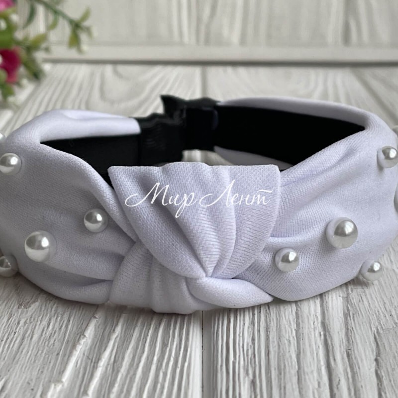 Обруч креп чалма с жемчугом, 4 см, белый, шт.