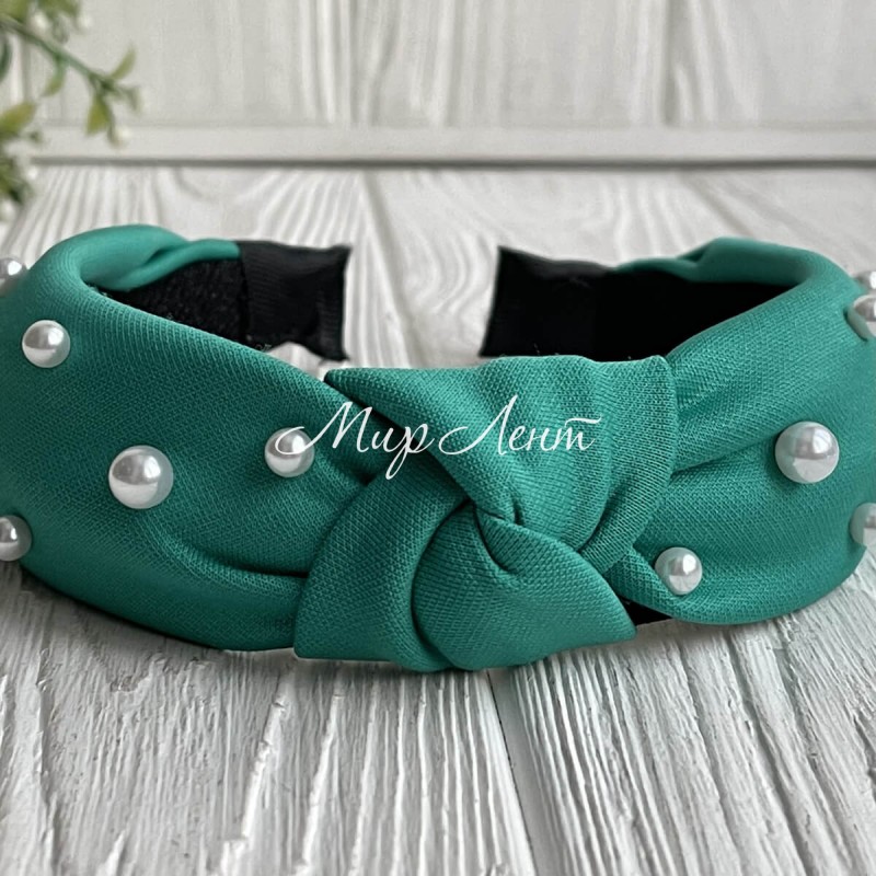 Обруч креп чалма с жемчугом, 4 см, изумрудный, шт.
