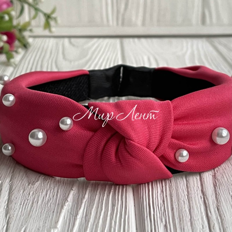 Обруч креп чалма с жемчугом, 4 см, малиновый, шт.