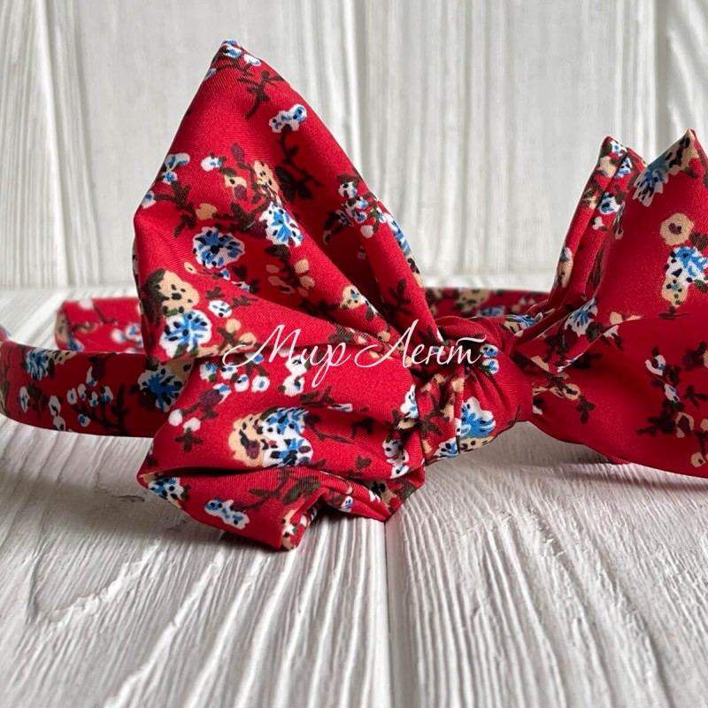 Обруч софт бант в цветочек, 2,5 см, красный, шт.
