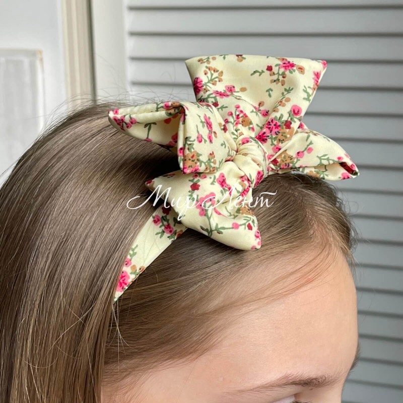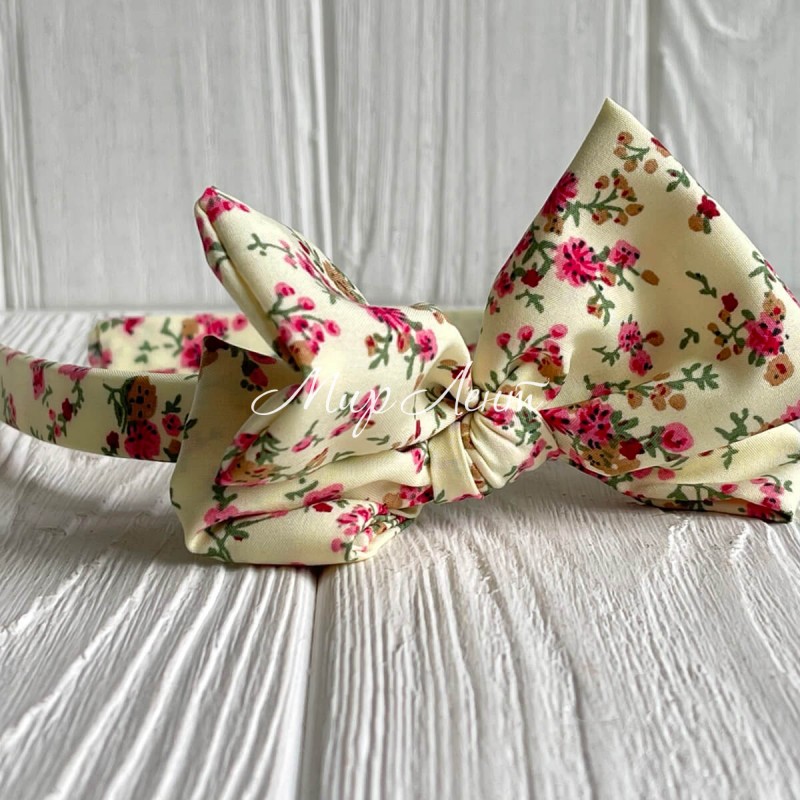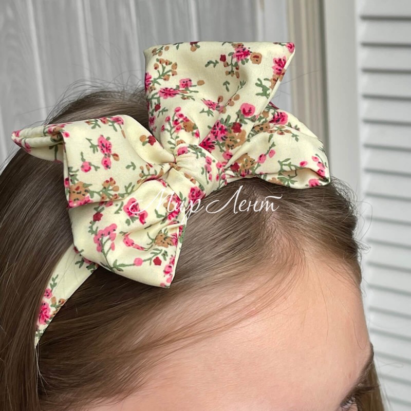 Обруч софт бант в цветочек, 2,5 см, молочный, шт.