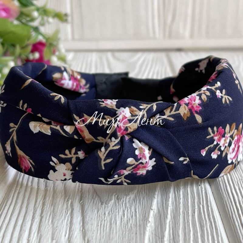 Обруч софт чалма пионы, 4 см, сапфировый, шт.