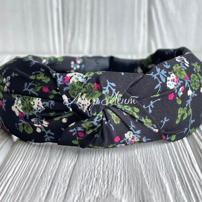 Обруч софт чалма в цветочек, 4 см, черный, шт.