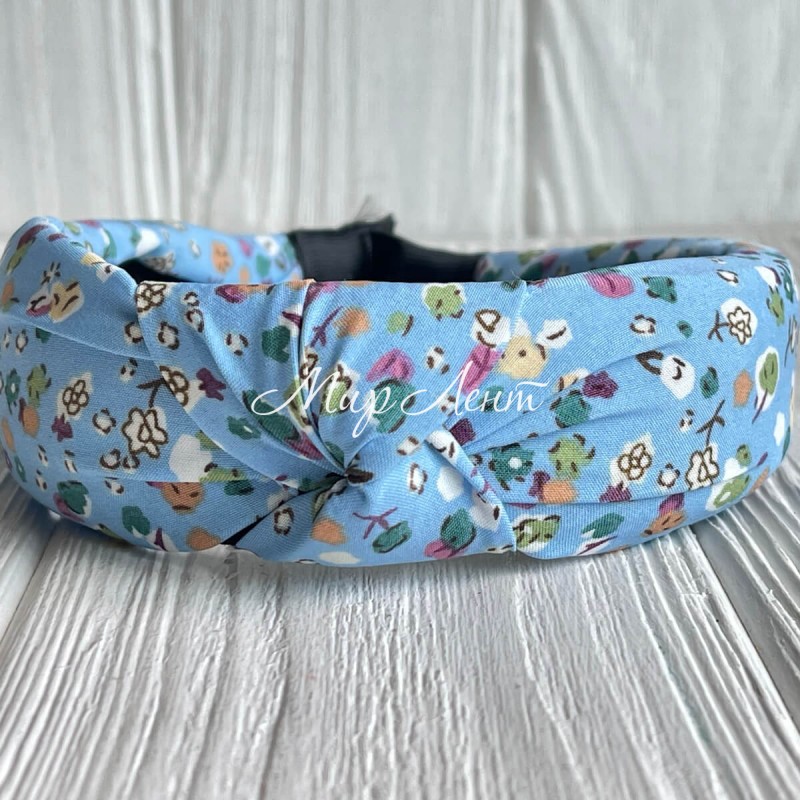 Обруч софт чалма в цветочек, 4 см, голубой с хлопком, шт.