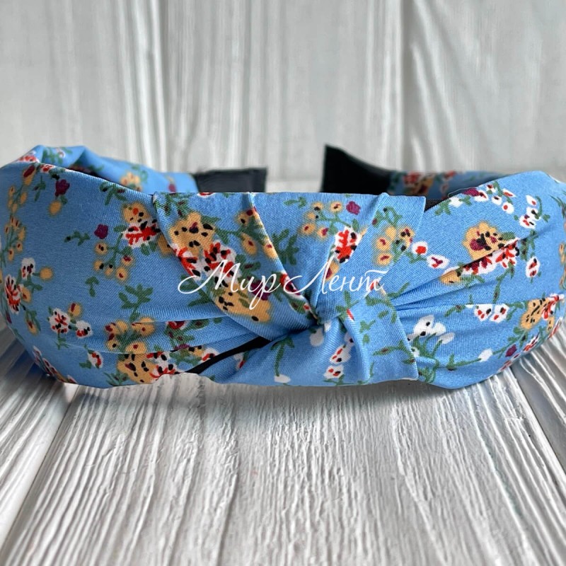 Обруч софт чалма в цветочек, 4 см, голубой, шт.