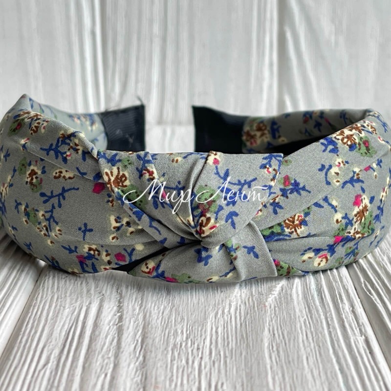 Обруч софт чалма в цветочек, 4 см, серый, шт.