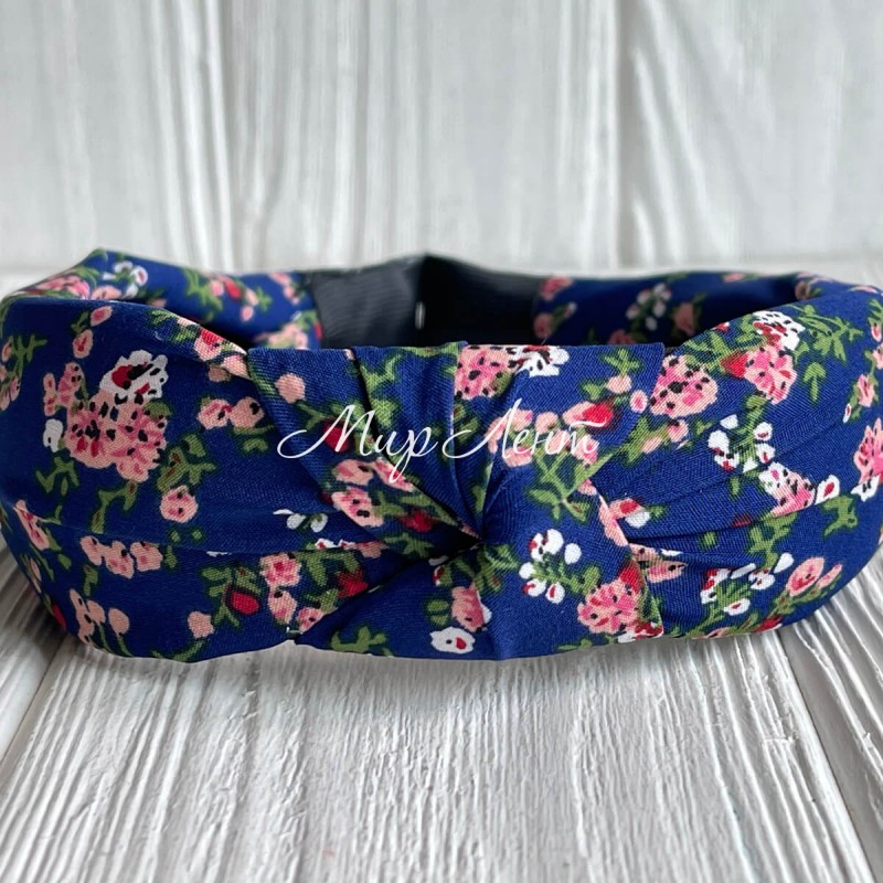 Обруч софт чалма в цветочек, 4 см, темно-синий, шт.