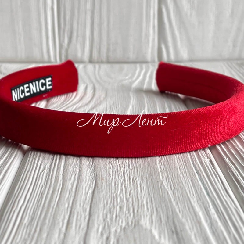 Обруч велюр-блеск тонкий, 1,8 см, красный, шт.