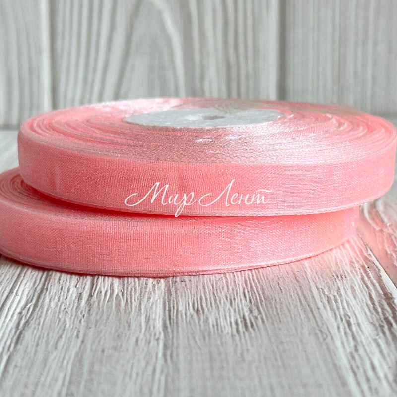 Органза 0,6 см, розово-персиковый, рулон 45 м
