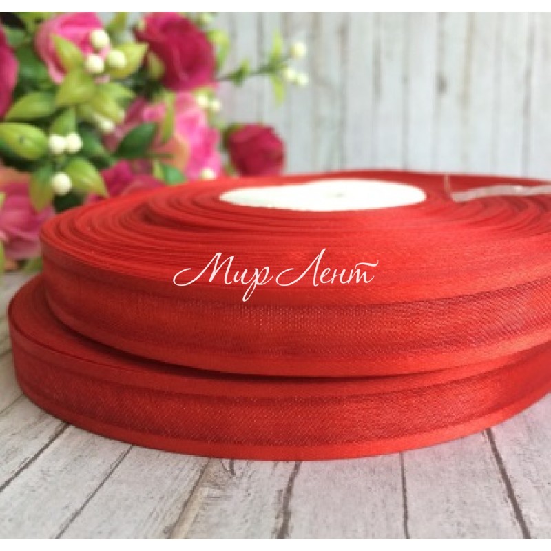 Органза с атласным кантом, 1,2 см, красная, рулон 45 м