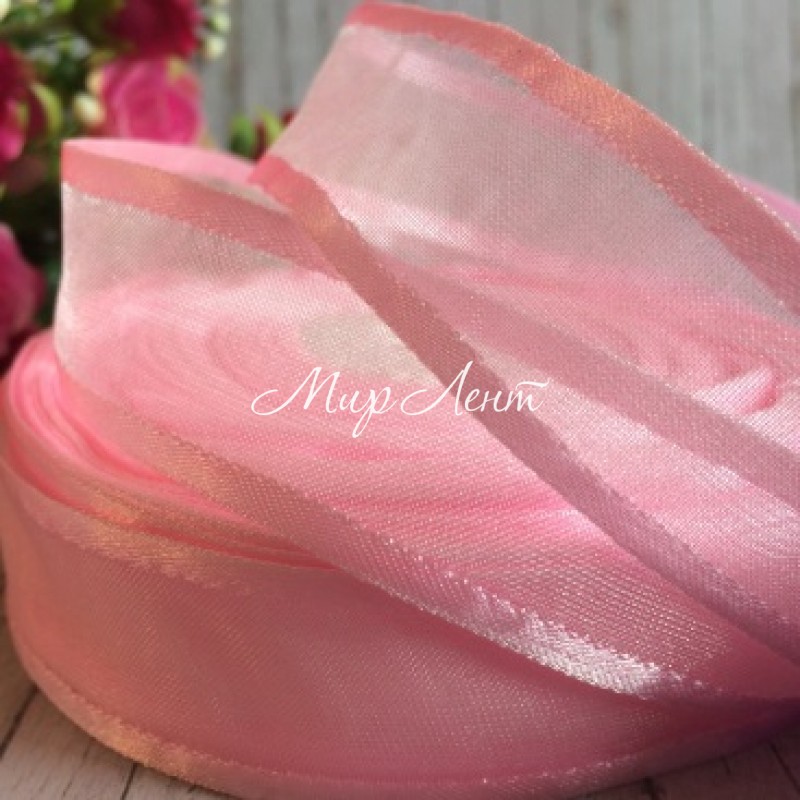 Органза с атласным кантом, 2,5 см, светло-розовый, рулон 45 м