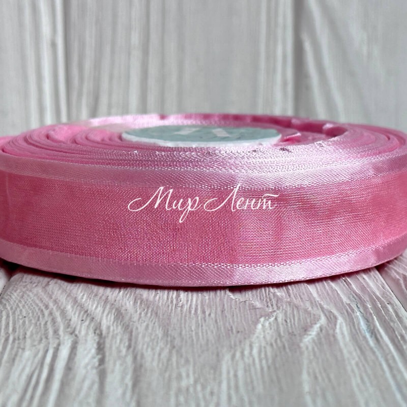 Органза с атласным кантом, 2,5 см, ванильно-пудровый, рулон 45 м
