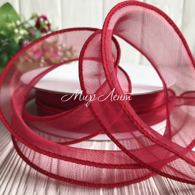 Органза с проволочным кантом, 3 см, малиново-красный, рулон 23 м