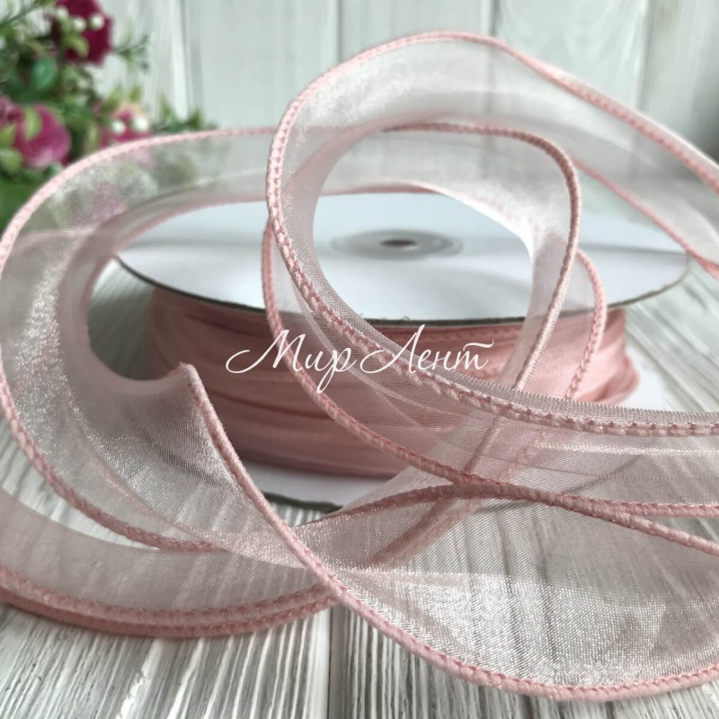 Органза с проволочным кантом, 3 см, светло-пудровый, рулон 23 м