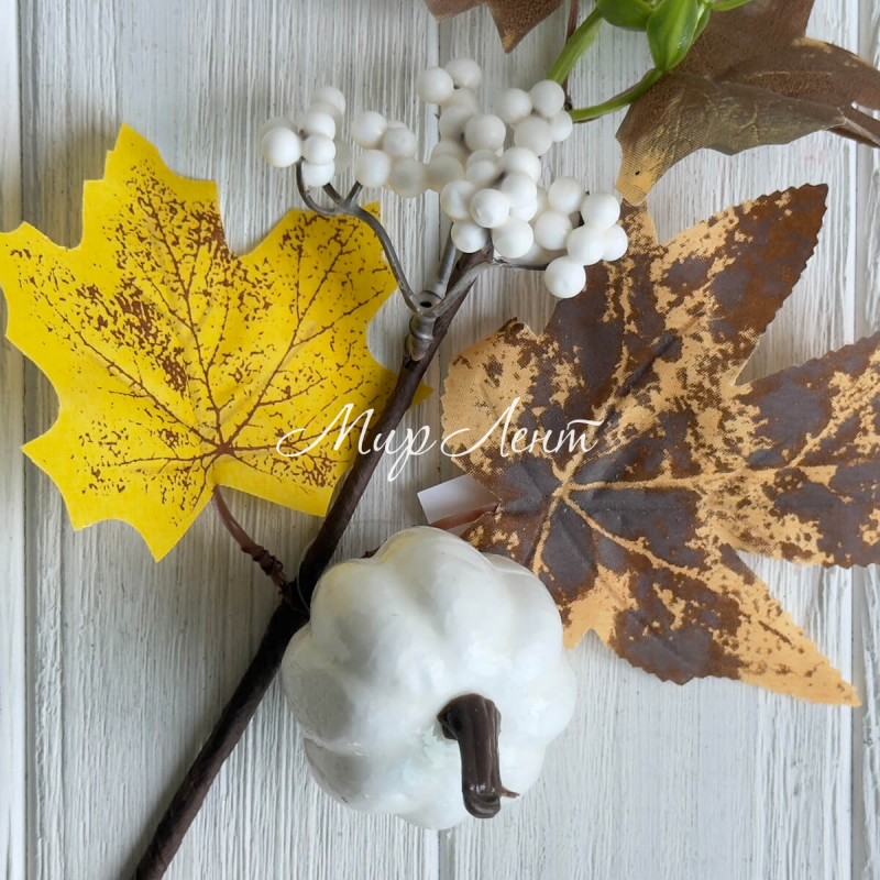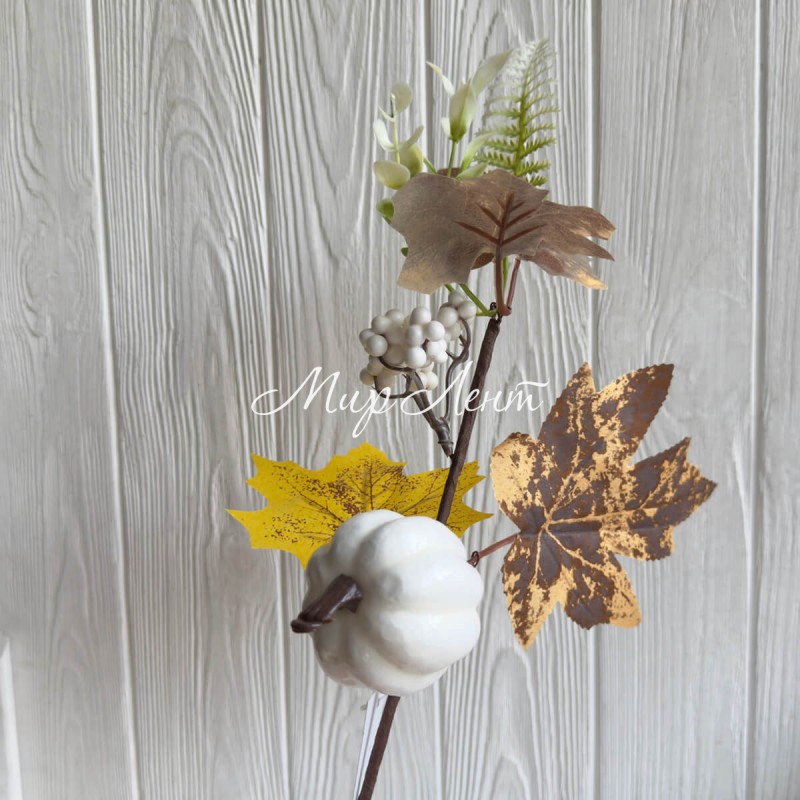 Осенняя веточка с тыквой (С30581), 36 см, біло-коричнево-желтая, шт.