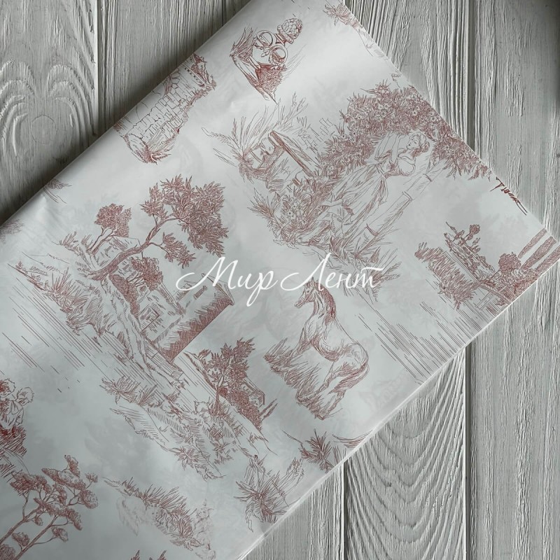 Пленка для цветов с принтом (J00347), розовая, 57х57 см, упаковка 20 шт.