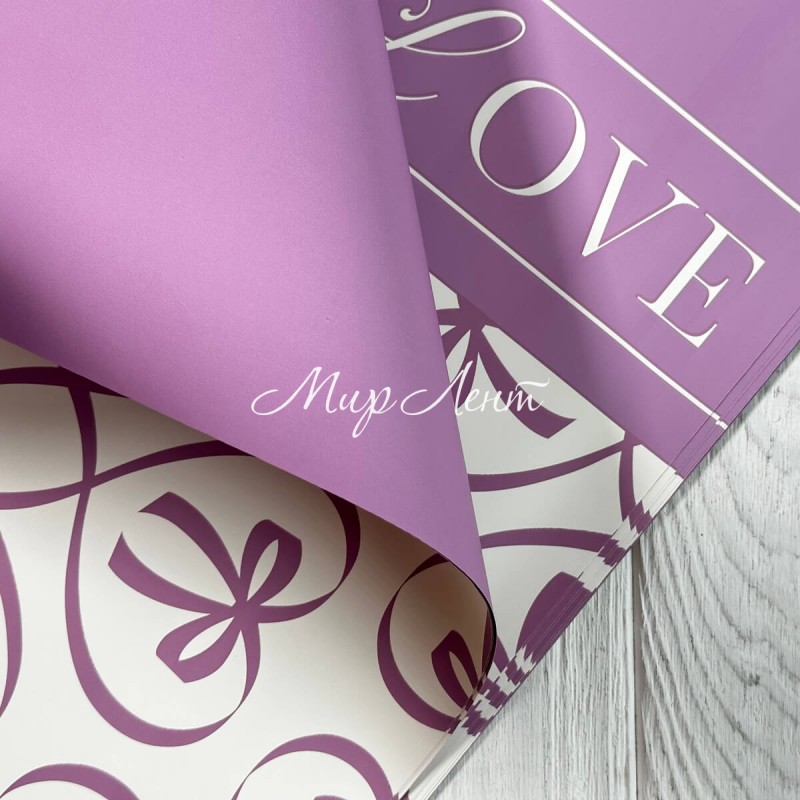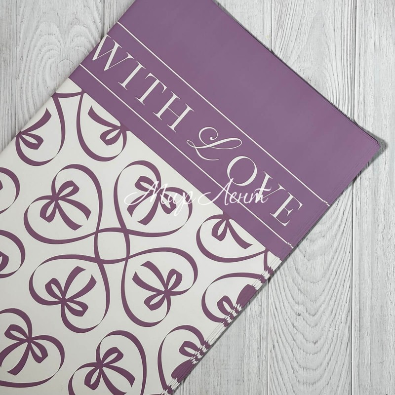 Пленка плотная с принтом (J00402), 57х57 см, сиреневый, упаковка 20 шт.
