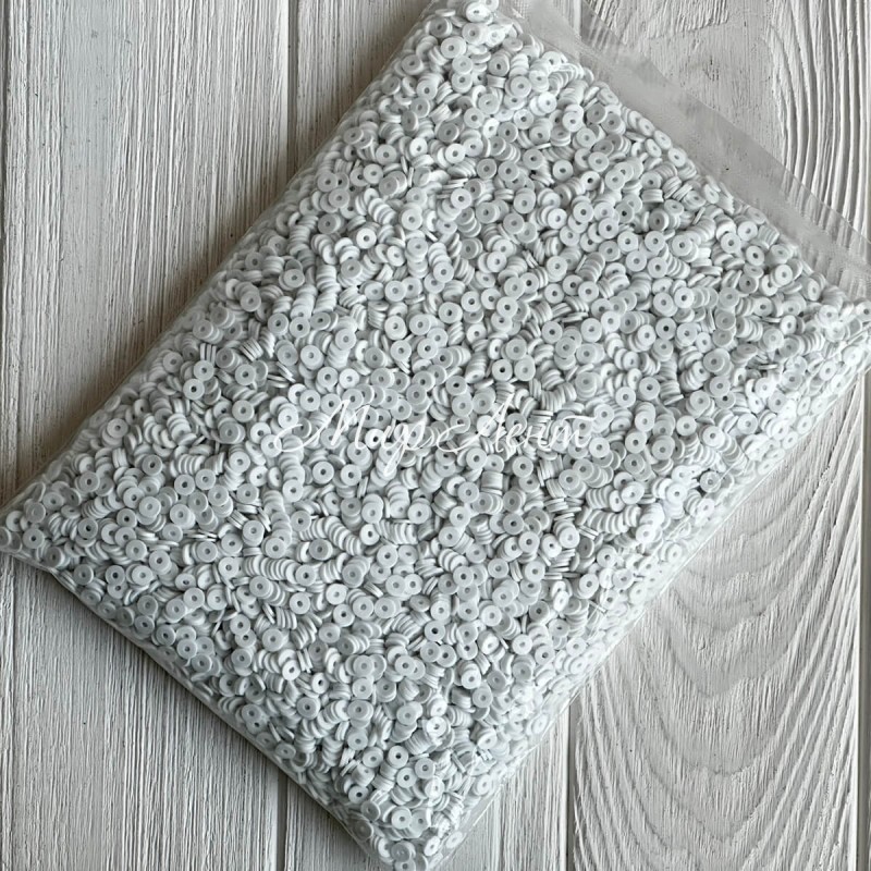 Плоские бусины, 6 мм, белые, Большая упаковка 500 г
