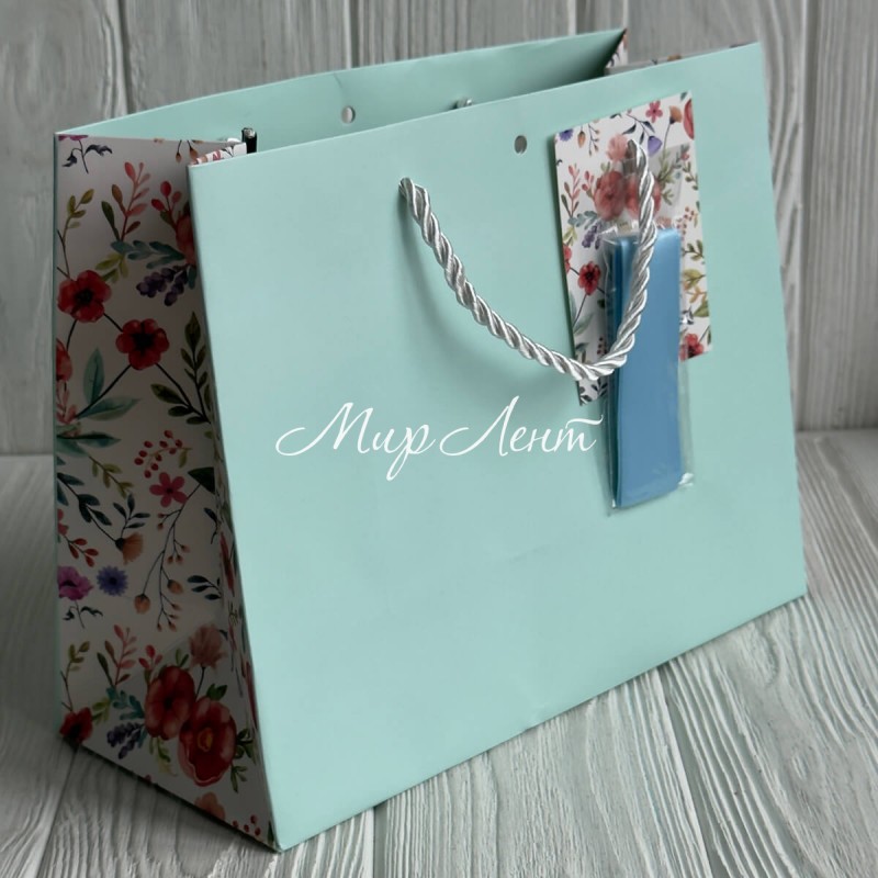Подарочный пакет с цветочным принтом (J01188), 18х23х10 см, мятный, упаковка 12 шт.