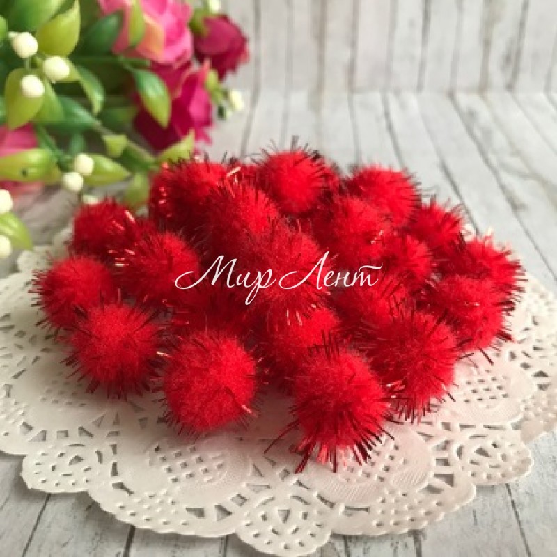 Помпоны с люрексом, 1,5 см, красный, упаковка 1000 шт.