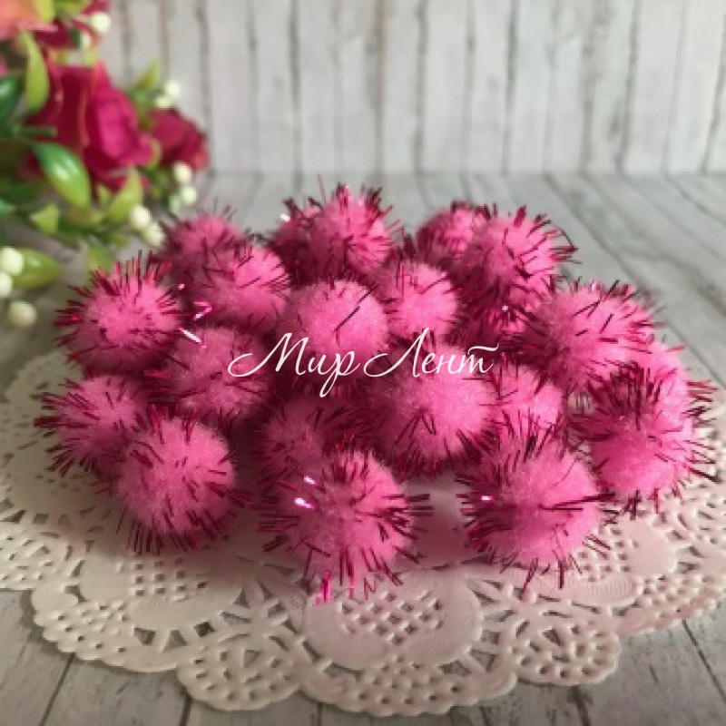 Помпоны с люрексом, 1,5 см, розовый, упаковка 1000 шт.