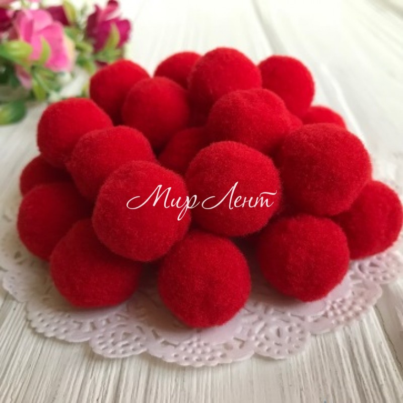 Помпоны бархатные, 1,5 см, красный, упаковка 1000 шт.