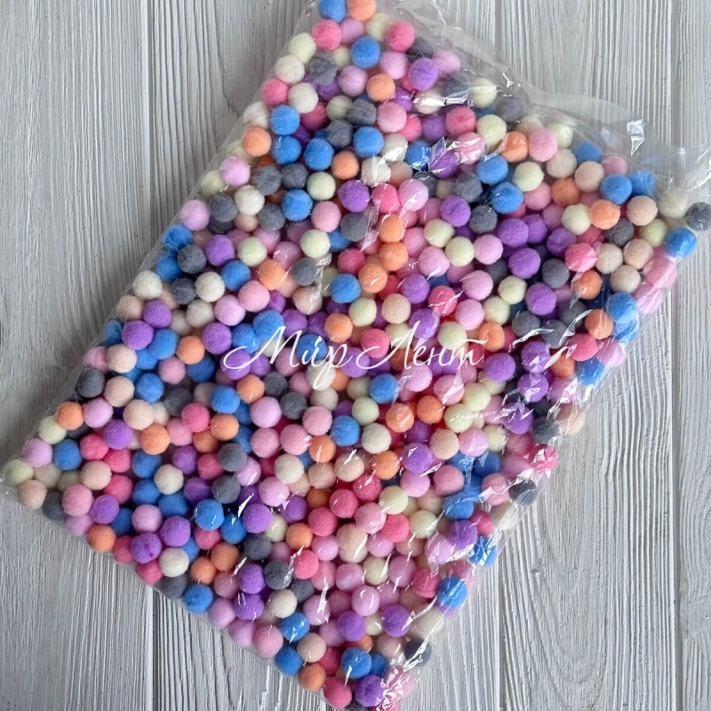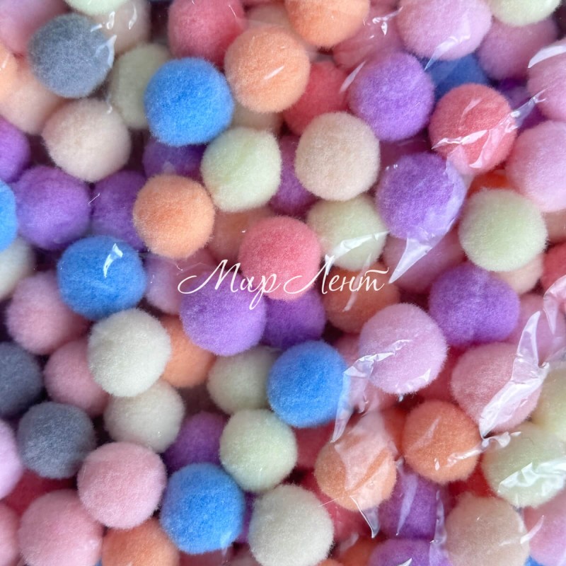 Помпоны бархатные (пастельные), 1,5 см, пастельный микс, упаковка 500 шт.