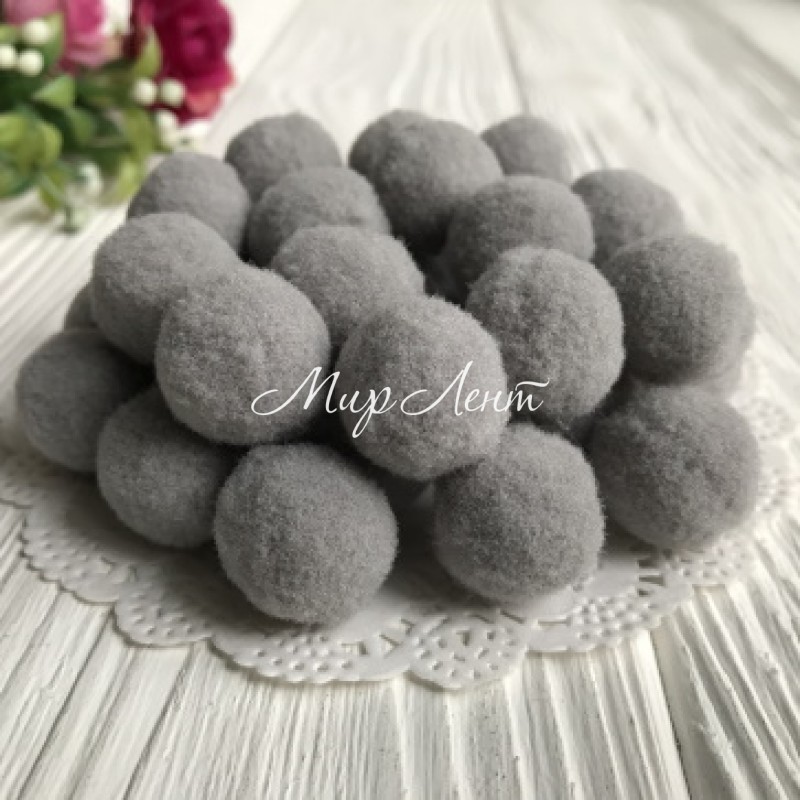 Помпоны бархатные, 1,5 см, серые, упаковка 1000 шт.